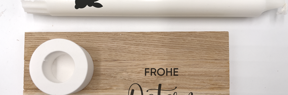 Das Geschenkset Ostern mit Kerze ist das perfekte Mitbringsel. Für deine Freundin, deine Nachbarin oder Erzieherin, es besteht aus einem Holzbrett, Kerzenhalter und einer Stabkerze.