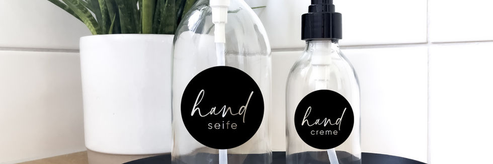 Mache den Seifenspender aus Glas zu einem schönen Hingucker in deiner Küche oder in deinem Bad! Die wiederbefüllbare Glasflasche mit schwarzem Pumpverschluss fasst ein Füllvolumen von 500ml oder 200ml.